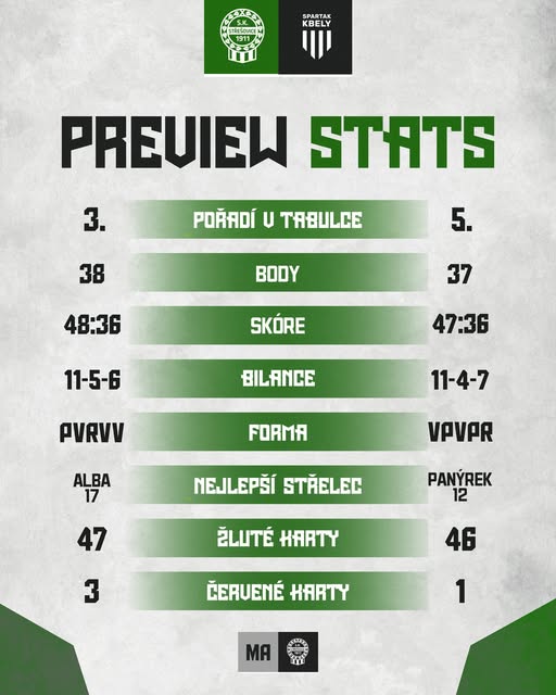 Statistiky 1. poločasu: branky: 1-0, střely: 7-3, rohy: 1-1, faktor xG: 1,45 – 0,48