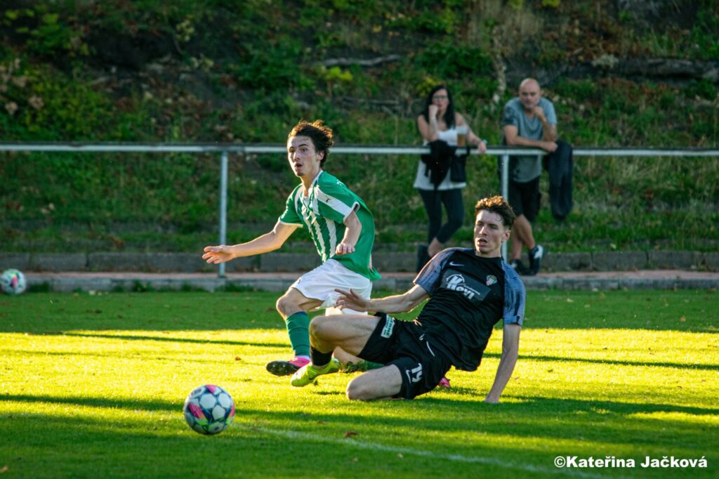 48´ Na první střelu na branku jsme si museli počkat až do druhého poločasu. Maneval ve vápně soupeře předskočil bránícího hráče a následně byl hloupě kopnut. Z toho vyplynul jako dar z nebes pokutový kop. A možnost provést první střelu na branku. Té se chopil David Věchtík a s přehledem proměnil. GÓL. DAVID VĚCHTÍK 1-0 (as. Sebastian Maneval)