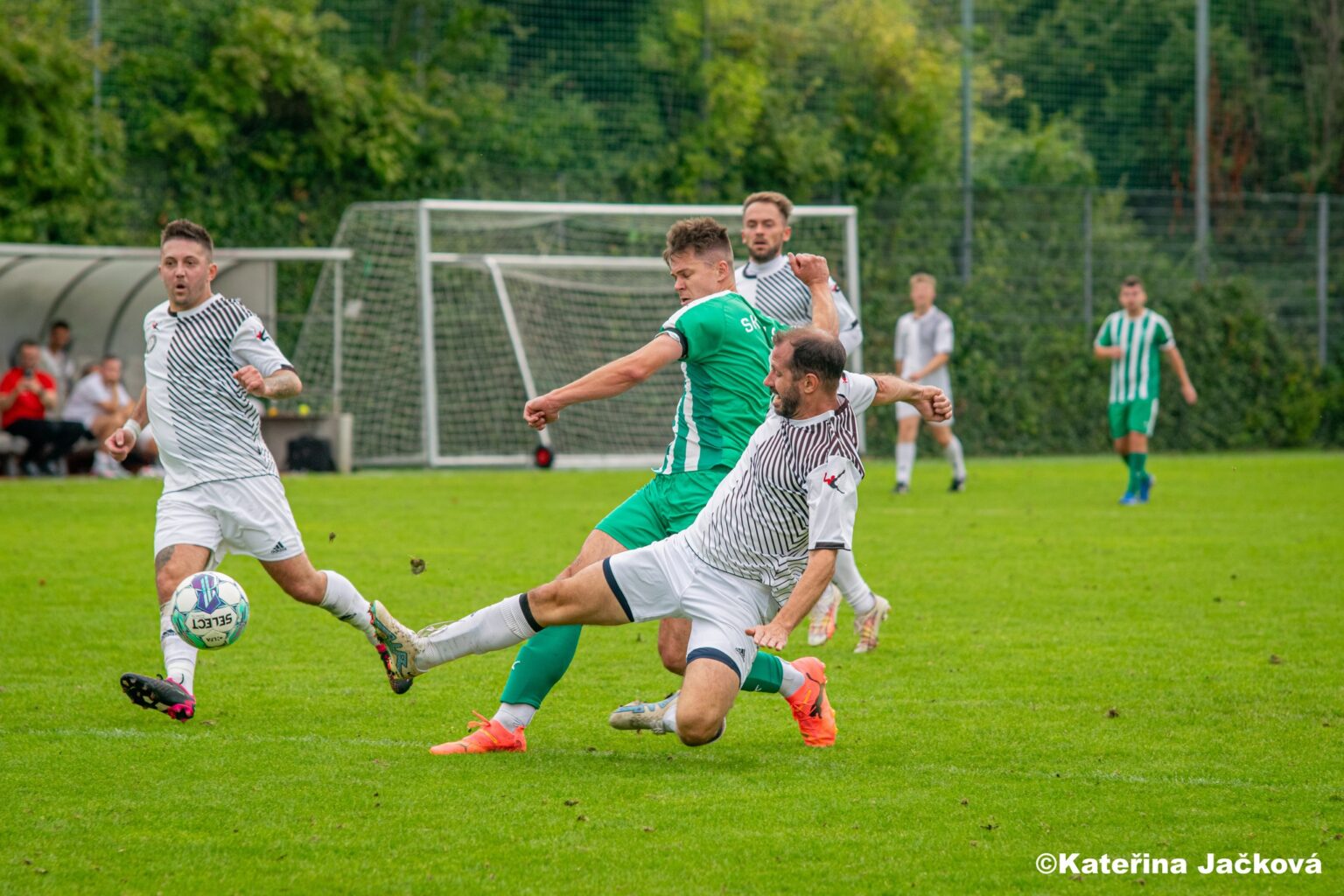 Dál jsme pokračovali v sympatickém výkonu a brzo mohli vedení zdvojnásobit. Vondrášek našel přesným balonem pod sebe Vokurku, ten si míč ještě připravil, z ideální pozice ale rozvlnil pouze boční síť. A tak bohužel přišlo staré známé Nedáš-Dostaneš. Po autu a následné sklepávačce na naší levé straně přišel centr na zadní tyč, zasekávačka kolem Krejči a přesná střela na zadní tyč. 40′ VONDRA 1:1