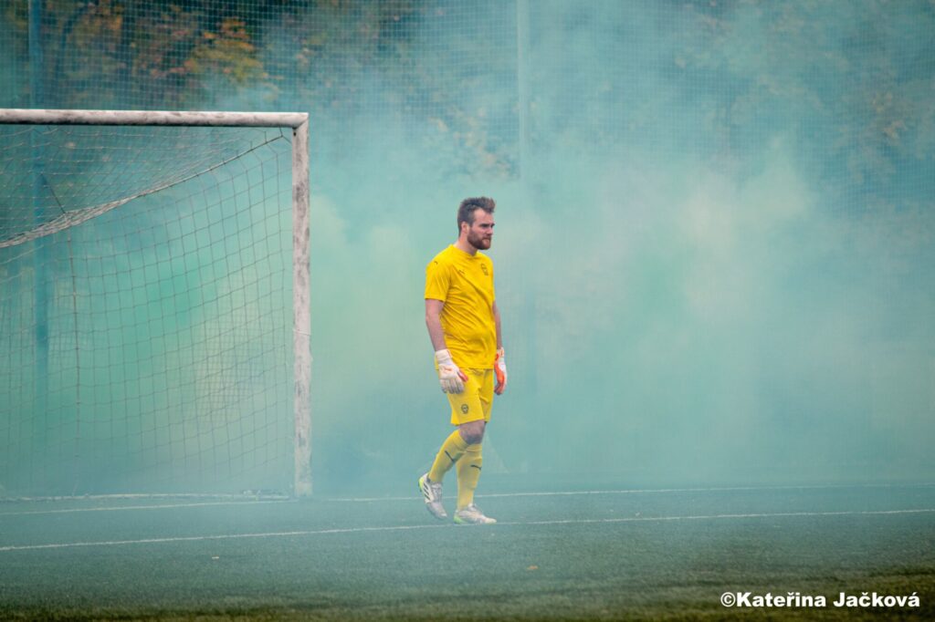 73´ Tentokrát přišel centr po zemi zleva napříč celým vápnem na zadní tyč, kde se Hůlka zadíval na hru soupeře a nevšiml si nabíhajícího hráče. A ve vteřině už bylo pozdě. Jakub Špírek 3-0