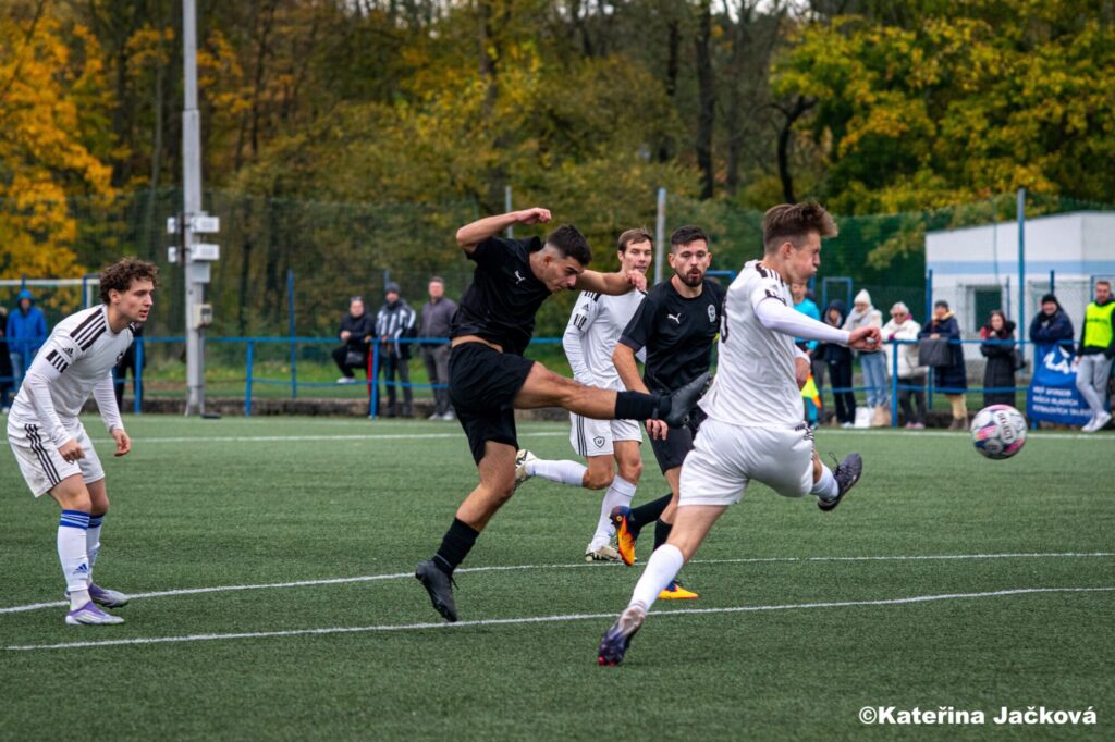 38´ Jsme výjimečně zachytili rozehrávku soupeře, konkrétně David Věchtík, posunul na Albu a ten z úhlu mohl vyrovnat z naší největší šance. Jenže brankář stihl špičkou kopačky míč zastavit.