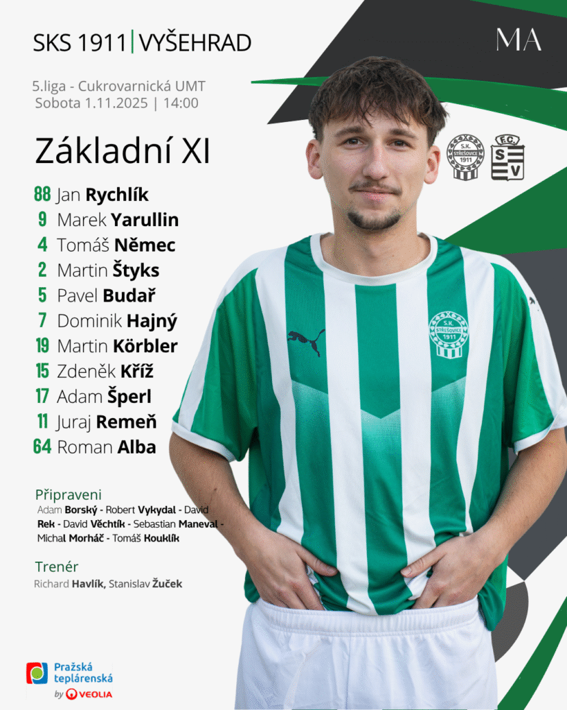 3´ Úvod do zápasu nám nevyšel. Hned v úvodů Vyšehrad dostal možnost standardní situace v podobě krátkého rohu. Míč zakroucený na přední tyč se skutečně od tyče odrazil přímo doprostřed brankového prostoru a pro Šimona Linhu to byl velmi snadný úkol posunout míč za brankovou čáru. Šimon Linha 0-1