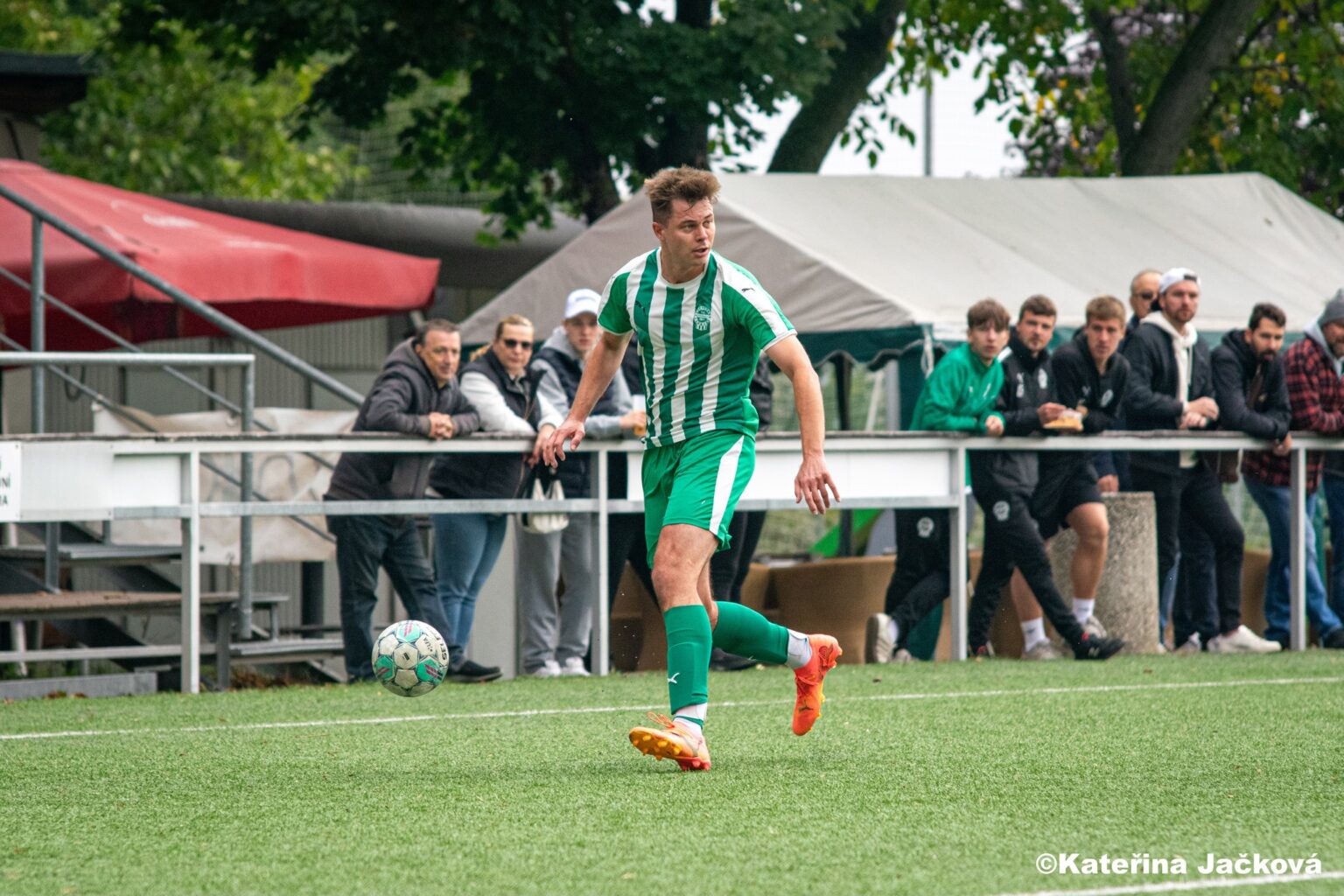 Klasicky jsme po gólu začali hrát hůř a Zlíchov mohl srovnat. Útočník si ale před lobem v souboji se Šiškunem k jeho nevoli pomohl faulem.