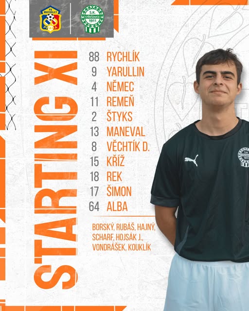 13´ Naše odpověď však byla velmi brzká. Po rohovém kopu Reka se na přední tyči ve spolupráci Němec, Alba prosadil právě náš nejlepší střelec. GÓL. ROMAN ALBA 1-1 (as. Tomáš Němec, David Rek)