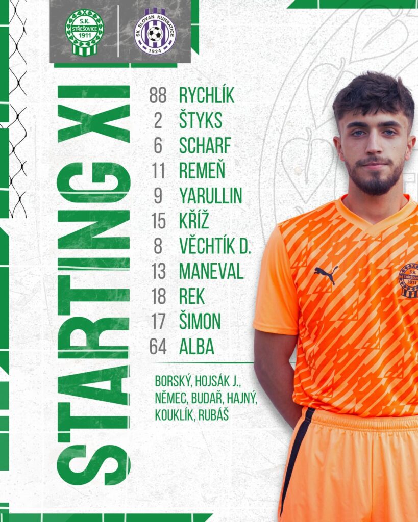 43´ Až v závěru poločasu jsme opět zabrali. Nejprve nadýchaný centr Alby neusměrnil mezi tyče hlavou Šimon. Parádně se zavěsil do vzduchu, leč mířil těsně nad. Vzápětí Yarullin dlouhým odkopem odvrátil soupeřův volný kop. Ten zalepil Alba, navedl si míč a ž k soupeřovu vápnu, krátká klička a z velkého úhlu pumelice krosem ke vzdálenější tyči po zemi. Wau. GÓL. ROMAN ALBA 2-1 (as. Marek Yarullin)